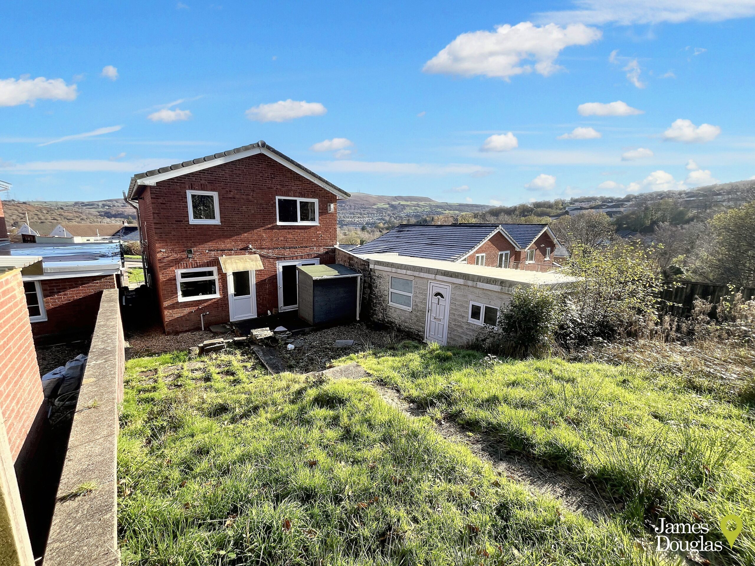 James Douglas is delighted to welcome this four bedroom detached property to the market. Set in the ever popular area of Coed-Y-Cwm, Pontypridd. The perfect property for someone looking for that perfect family home and is willing to put in some work to really make it their own. Being sold with no onward chain. In brief terms the accommodation comprises an entrance hallway, WC, living room, dining room and modern kitchen all on the ground floor. Upstairs there are two double bedrooms, two good sized single bedrooms and a shower room. Mains gas fired central heating (Worcester combi boiler) and UPVC double glazed windows and doors throughout. Off-road resin driveway parking for multiple vehicles to the front with potential to add further parking. Large garage with electric roller door. The front garden is complemented by real grass and chippings. Fantastic panoramic views to the front. Side access. West facing two tier rear garden space complemented by chippings, real grass and shrubbery. There is also a handy wooden storage shed. Rear access. Potential to extend (STP). EPC C potential B. Council tax band D.