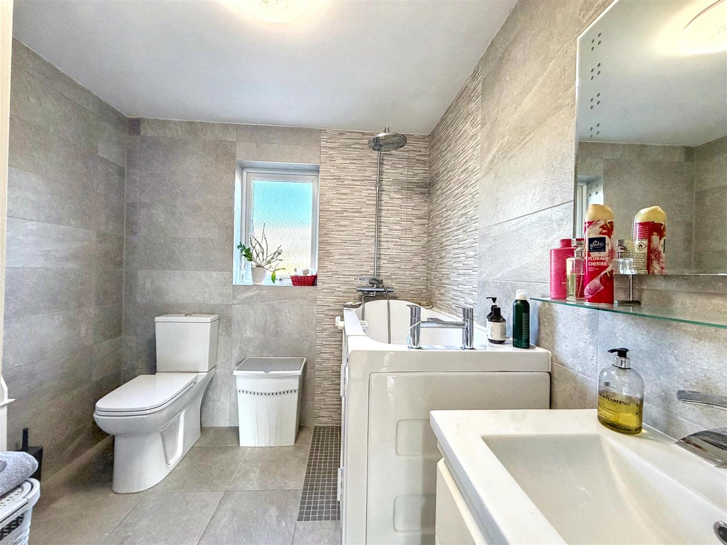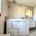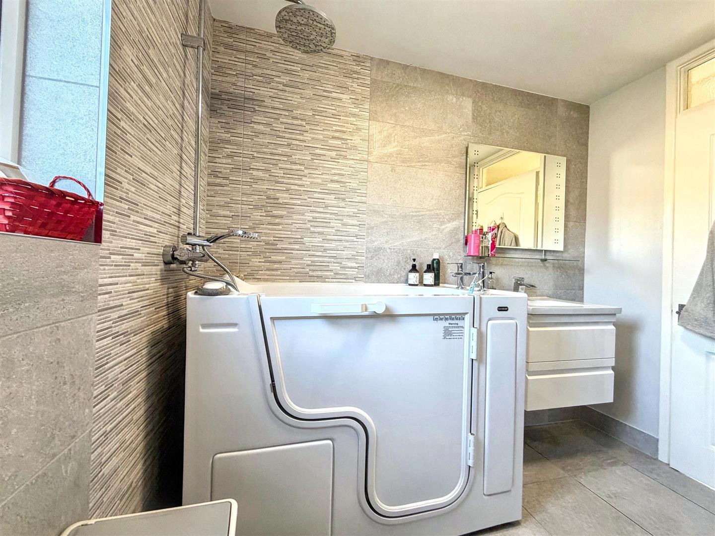 • Stylish adapted bathroom with walk-in seated bath/shower
