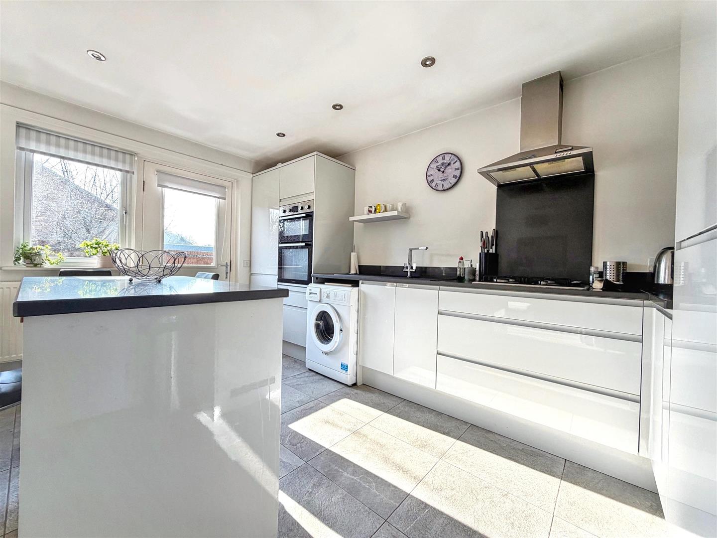 Occupying a generous, level corner plot, the home has been meticulously remodelled and refurbished to a high standard. The heart of the home is a striking open-plan kitchen, lounge, and dining area, complete with a contemporary central island and integrated appliances—ideal for modern living and entertaining.